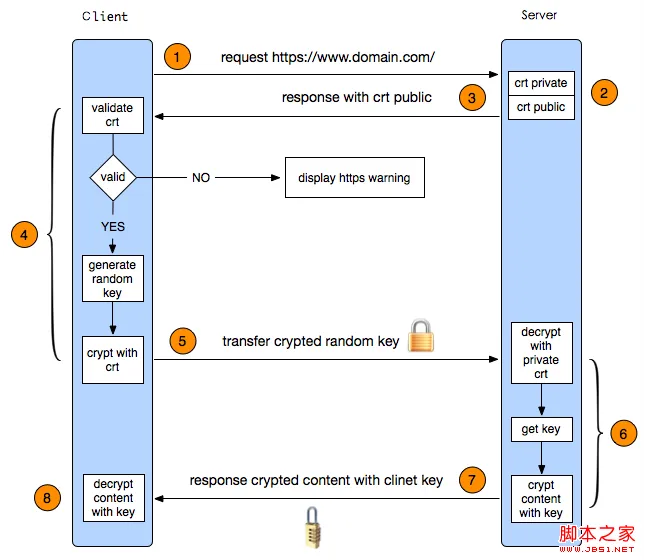 这部分工作是有客户端的TLS来完成的,首先会验证公钥是否有效,比如颁发机构,过期时间等等,如果发现异常,则会弹出一个警告框,提示证书存 在问题。如果证书没有问题,那么就生成一个随机值。然后用证书对该随机值进行加密。就好像上面说的,把随机值用锁头锁起来,这样除非有钥匙,不然看不到被 锁住的内容。