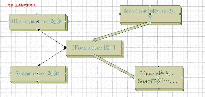 iformatter接口是序列化格式器,通过实现该接口提供序列化功能。系统提供给我们的序列化功能对象(BinaryFormatter、SoapFormatter)都是实现了该接口。