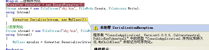 在对象的内部我们可能需要禁止一些成员被序列化。在序列化的对象的时候,系统是递归的序列化对象内部的每一个成员,如果有一个对象是不允许序列化的,也就是没有加上Serializable特性的。那么在序列化的时候就会失败。至少我们需要能控制它的序列化过程的手动才行。请看代码: