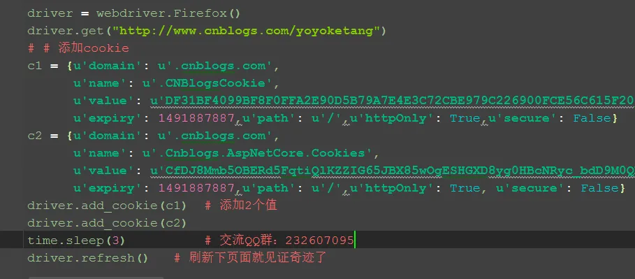 2.add_cookie()只添加name和value,对于博客园的登录是不成功。