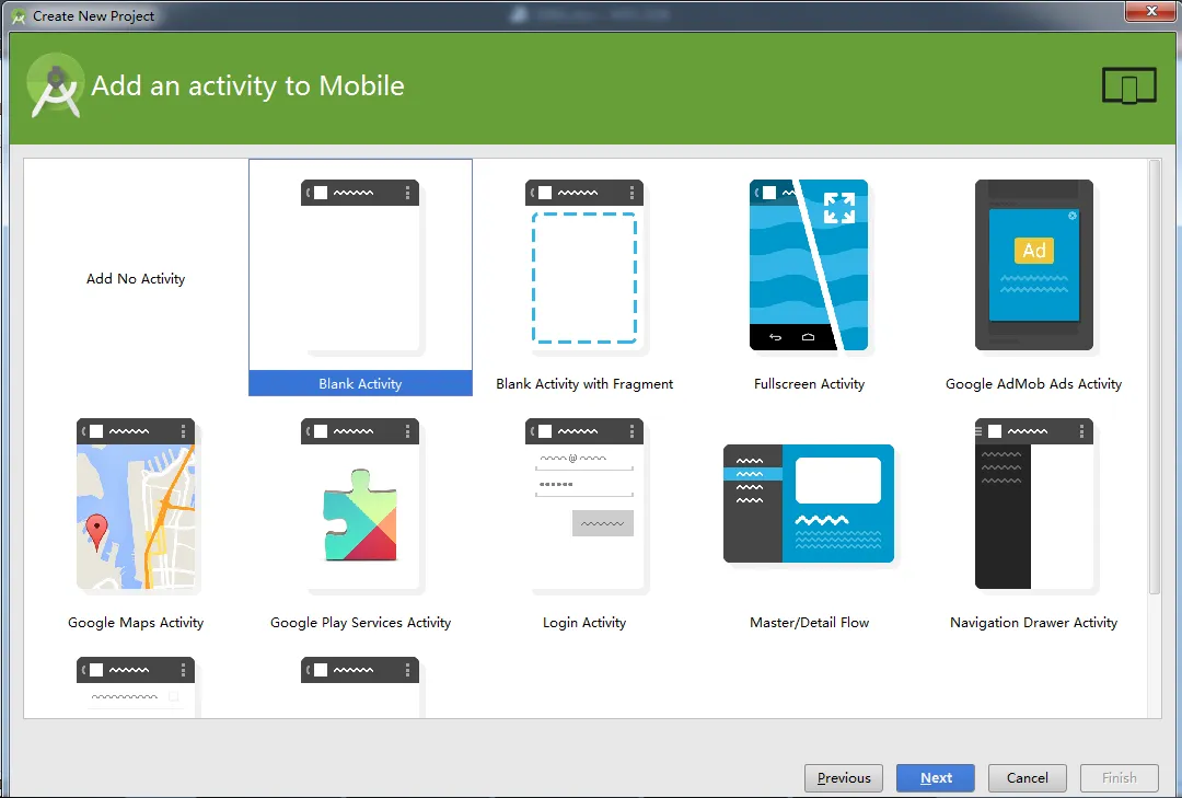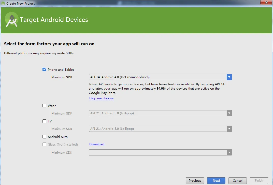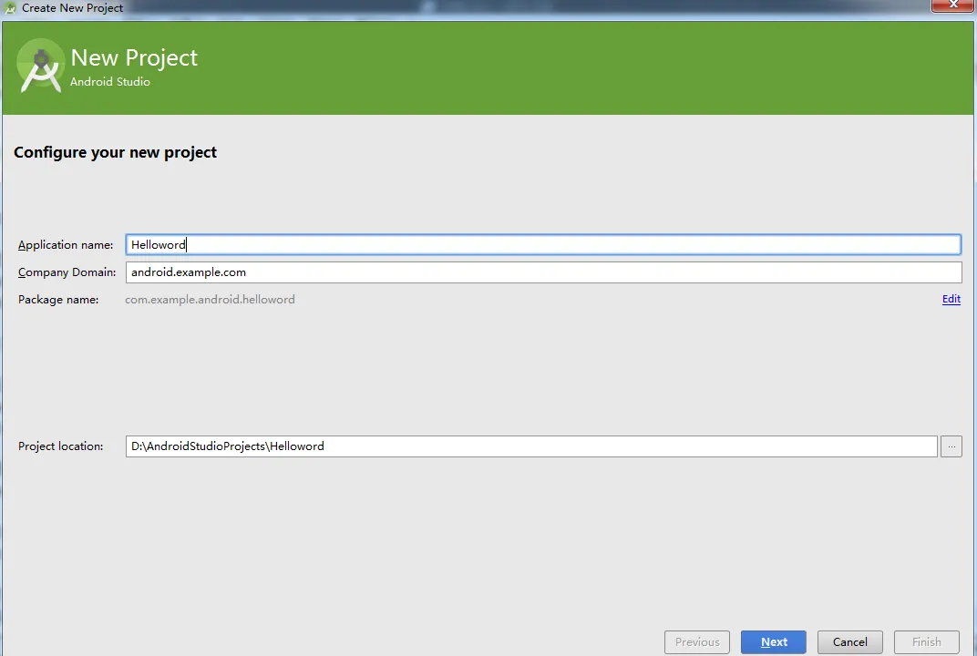 选择第一项,Start a new Android Studio project。后面也是一步步按照要求填写即可。