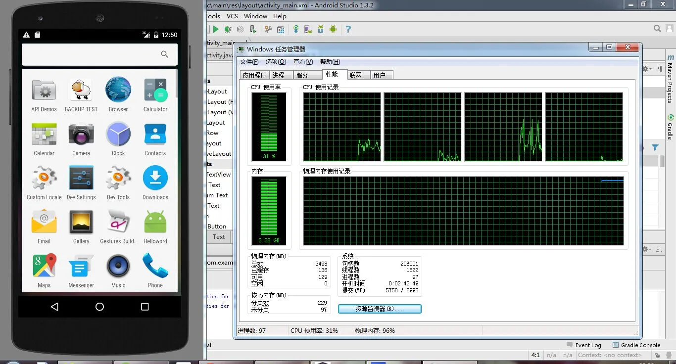 再次运行AVD,此时AVD能够正常运行起来了。至此,Android开发环境算是搭建起来了,可是速度和蜗牛一样。i3、4G的机器内存几乎被吃光,有条件还是换个mac吧。