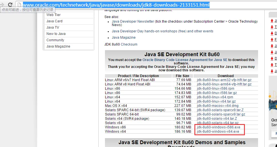 由于我的是32位的操作系统,因而下载的是jdk-8u60-windows-i586.exe。如果操作系统是64位的话,需要下载jdk-8u60-windows-x64.exe。下载完以后一步步默认安装即可。由于我之前配置过jre,所以需要改下javahome。