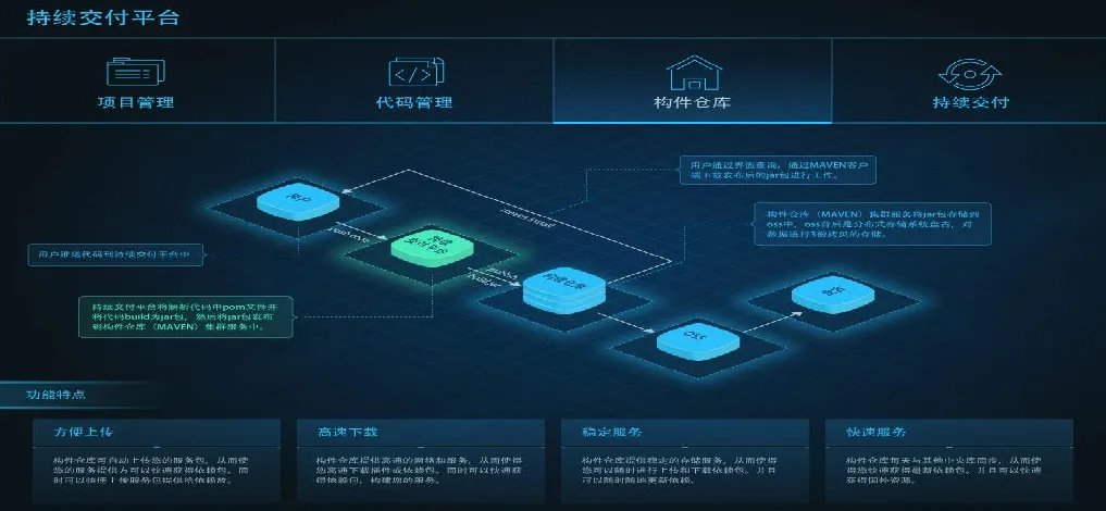 阿里云构件仓库实现高速并且稳定的Maven镜像管理服务,每天与其他中央库同步,提供高速稳定的网络和服务。可以通过构件服务上传、下载插件或依赖包,这使得在构建时可以快速下载依赖包,也可以上传依赖包提供给其他开发者使用。