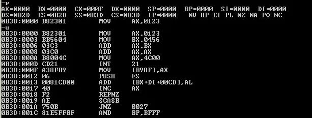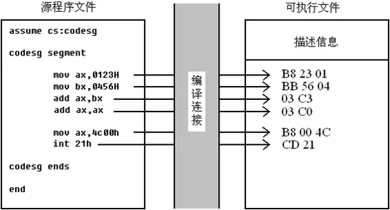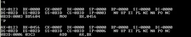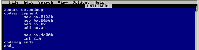 assum cs:codesg codesg segment start: mov ax,0123H mov bx,0456H add ax,bx add ax,ax mov ax,4c00h int 21h codesg ends end