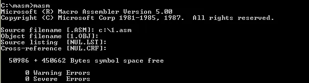 进入DOS方式,进入 C:\masm 目录,运行masm.exe。如果源程序文件不是以 asm 为扩展名的话,就要输入它的全名。比如p1.txt。在输入源程序文件名的时候一定要指明它所在的路径。如果文件就在当前路径下,只输入文件名就可以。