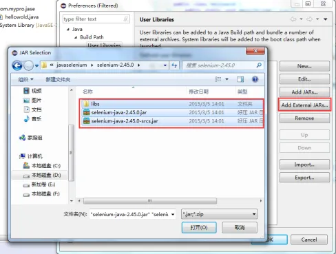 eclipse导入selenium的所有jar包。