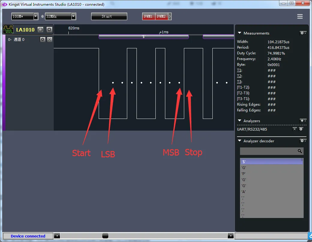 /*********************************************************************** * I.MX6 逻辑分析仪 UART * 说明: * 最近UART上数据传输出现了一些问题,买了一个逻辑分析仪来对数据进行 * 分析,体验一下数据位格式。 * * 2016-7-21 深圳 南山平山村 曾剑锋 **********************************************************************/