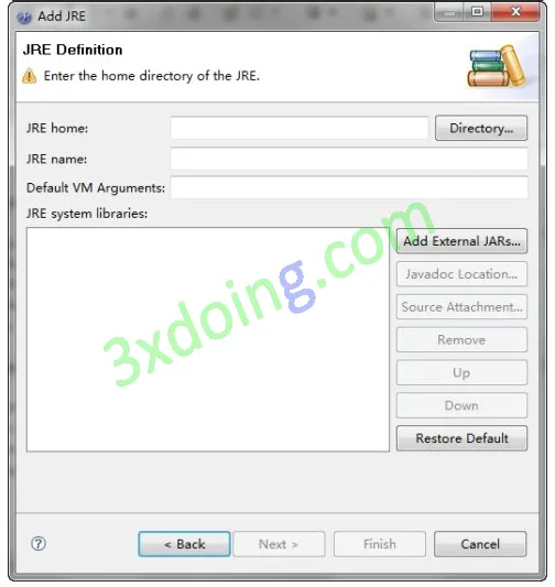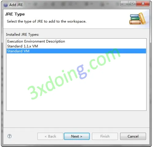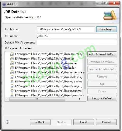 则会出现JRE Definition(如果是7.0版本会出现一个对话框,选择Standard VM,点击Next就可以了),
