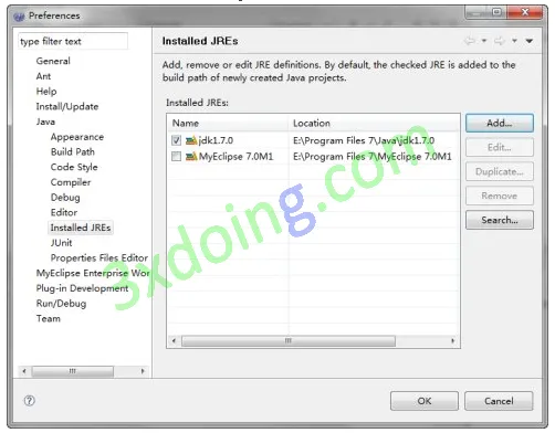 MyEclipse和JAVA的各个版本可能有一点不同,但是万变不离其宗,在这里小弟用的是MyEclipse7.0和JDK1.7.0,现在就给朋友们讲解一下MyEclipse配置JDK的方法。