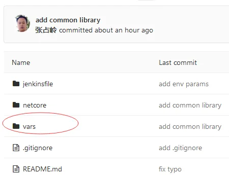 2 在git仓库根目录建立vars文件夹,我们的方法文件就在这个里面