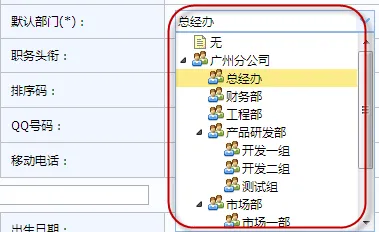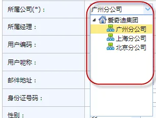 对于属性列表,如所属公司、所属部门机构等有层次性的数据,它的绑定操作也是类似的,如下代码所示。