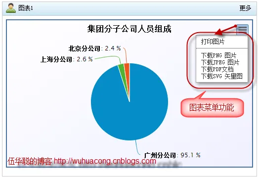 从上面的图表里面看到,每个图表的右上角,都有一个菜单的功能,里面有一些功能,如打印图片、导出图片等操作,具体菜单的表现如下所示。
