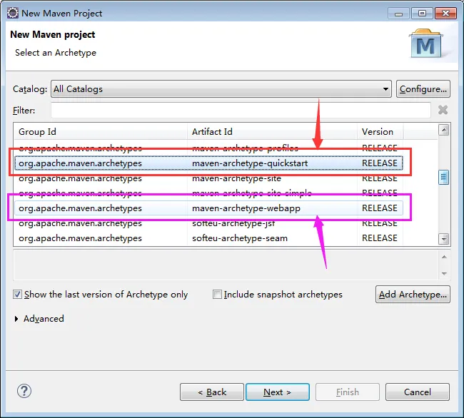 3 创建工程,红色是创建普通的maven工程的。粉色是创建web工程的。