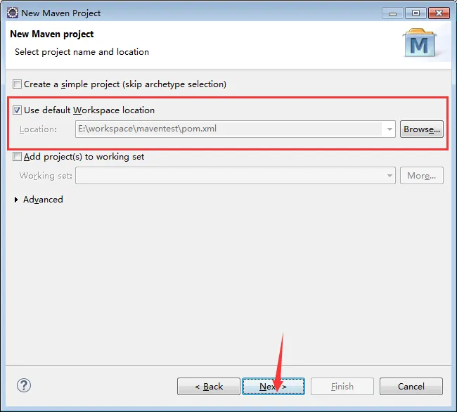 2 选择默认的工程位置