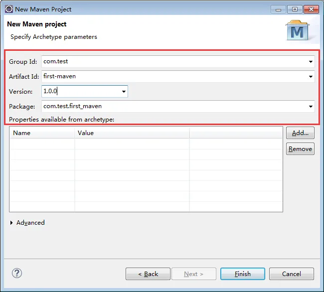 1 <groupId>com.test</groupId> 2 <artifactId>maventest</artifactId> 3 <version>0.0.1-SNAPSHOT</version> 4 <packaging>jar</packaging> 5 6 <name>maventest</name> 7 <url>http://maven.apache.org</url>