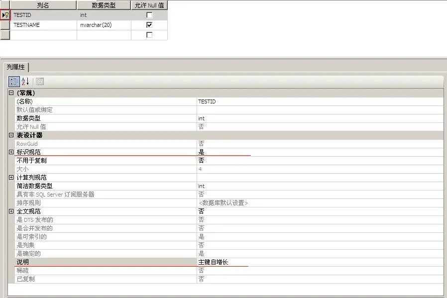EXEC sys.sp_addextendedproperty @name=N'MS_Description', @value=N'主键自增长' ...