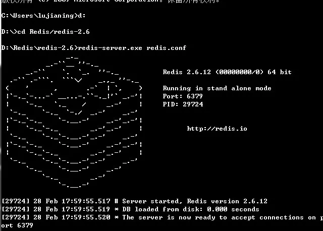 进入redis目录后 开启服务 (注意加上redis.conf)