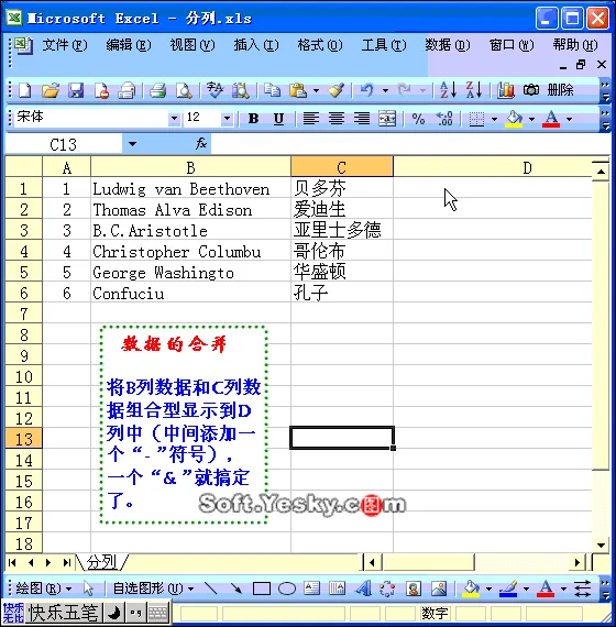 照片名称:在Excel中数据合并