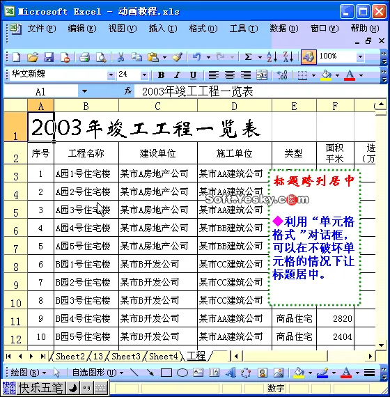 照片名称:Excel标题跨列居中