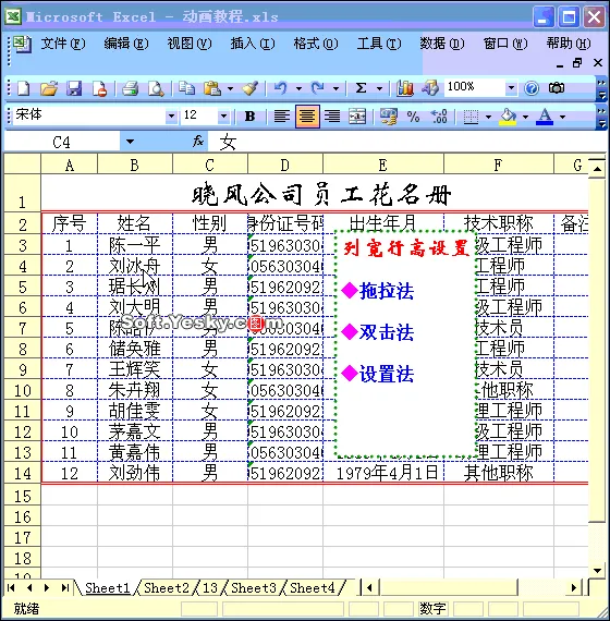 照片名称:Excel表格列宽行高设置