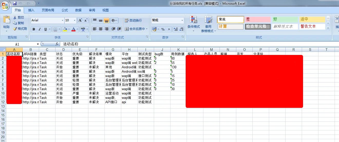 在Jira上通过过滤器我们可以做出多种视图,以方便统计我们想要收集的结果。比如:我想查看所有分派给我的任务。在Jira上,我保存了一个过滤器,叫做“分派给我的所有任务”。这个过滤器可以过滤出所有分配给我的任务。下面我要对每一个分配给我的任务做一下统计,收集一些关键的字段值,并输出到excel表: