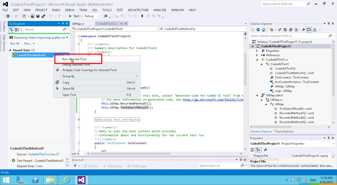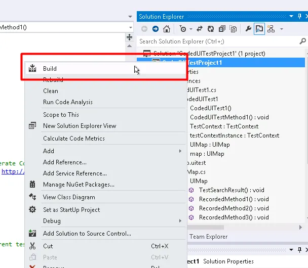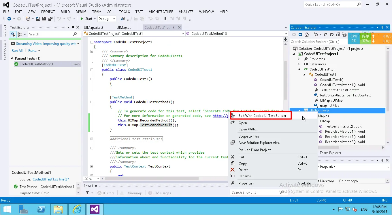 2.创建后直接就可以录制脚本,也可以不录制,在项目中右键UIMap.uitest点击Edit With Coded UI Test Builder: