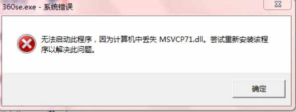 今日电脑偶然出现:【无法启动此程序,因为计算机中丢失MSVCP71.dll。尝试重新安装该程序以解决此问题。】的不断地弹窗报错。