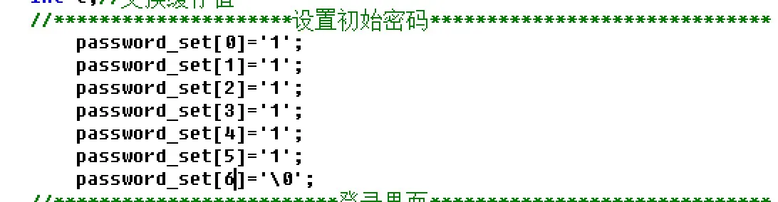 这样写 char password_set[7]={"123456"};默认第7位是\0