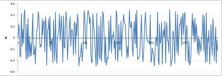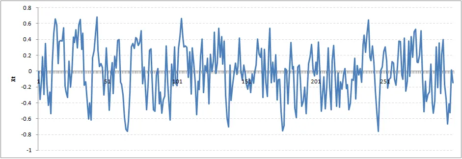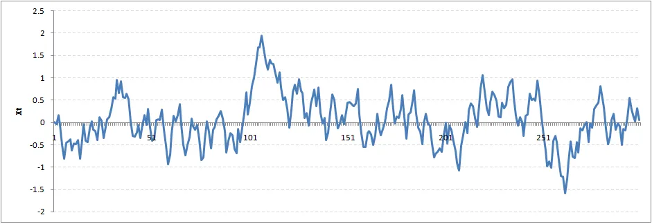 让我们从一个Rho=0的完全平稳序列开始。这里是时间序列的图: