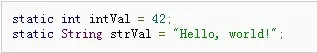 编译器会生成一个类初始化方法<clinit>,当该类初次被使用时执行,这个方法将42存入intVal中,并得到类文件字符串常量strVal的一个引用。当这些值在后面被引用时,他们通过字段查找进行访问。