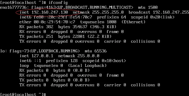 3 当程序安装完成后,我们可以通过ifconfig命令查看当前的ip地址