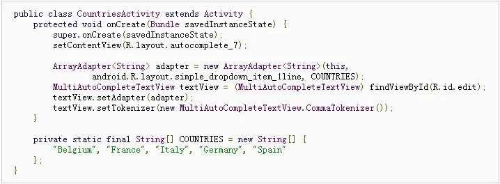 本文转自博客园农民伯伯的博客,原文链接:Android 中文 API (22) —— MultiAutoCompleteTextView,如需转载请自行联系原博主。