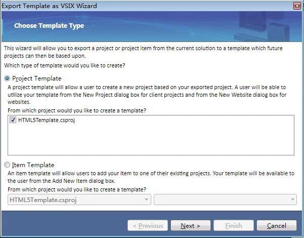 下面我将在上面4个步骤的基础上创建一HTML5页的模板项和一个创建HTML5网站的模板项。