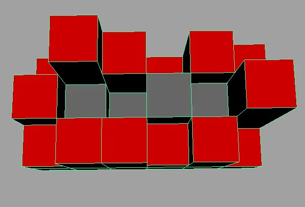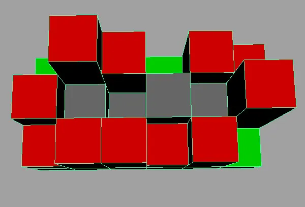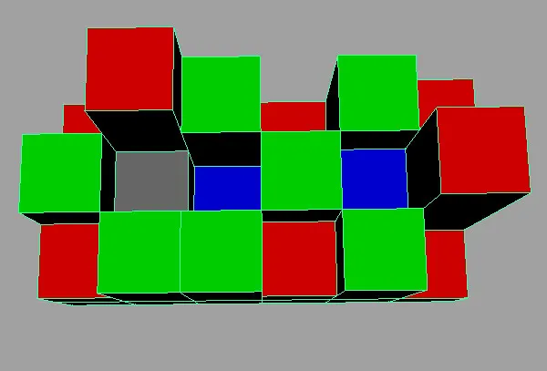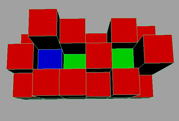 等两个绿格子遍历结束了,它们会被标记为红色,蓝格子遍历会先被标记红色,然后加入优先队列queue中,由于其周围格子全变成红色了,所有不会有任何操作,如下图所示: