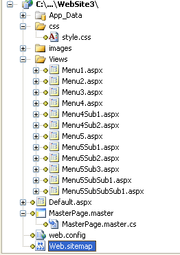 添加一个Master Pag到我们的website项目中,拖一个SiteMapDataSource控件到页面上,接着拖一个Menu控件,Menu控件包含在一个div里面,menu每个属性都能在这里被找到,