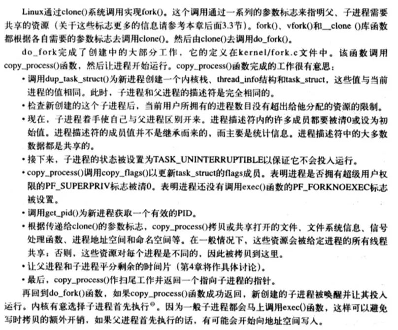 由于复制完成后,子进程马上就要载入新的程序来运行了,在此之前从父进程那里复制来的内存空间都不需要了。所以,"复制"过程中,复制内存空间是件费力不 讨好的事情。