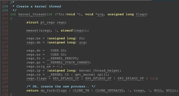 内核线程没有独立的地址空间,只运行与内核空间。内核线程通过kernel_thread() 创建: