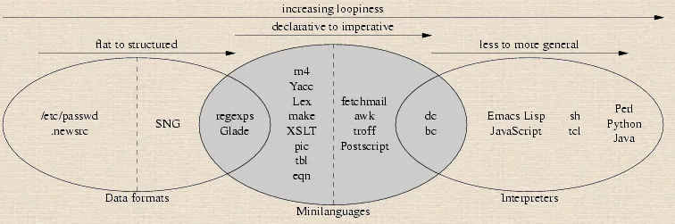 regexp:Glob表达式,基本正则表达式,扩展正则表达式,Perl正则表达式。正则表达式是微型语言能够多么简练的极端例子。