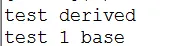 #include <iostream> #include <string> using namespace std; class base { public: virtual void test() { cout << "test base" << endl; } void test_1() { cout << "test_1 base" << endl; } }; class derived : public base { public: void test() { cout << "test derived" << endl; } //虚函数 void test_1() { cout << "test_1 derived" << endl; } //隐藏 }; int main() { derived d1, d2; base *p1 = &d1; base *p2 = &d2; p1->test(); p2->test_1(); }