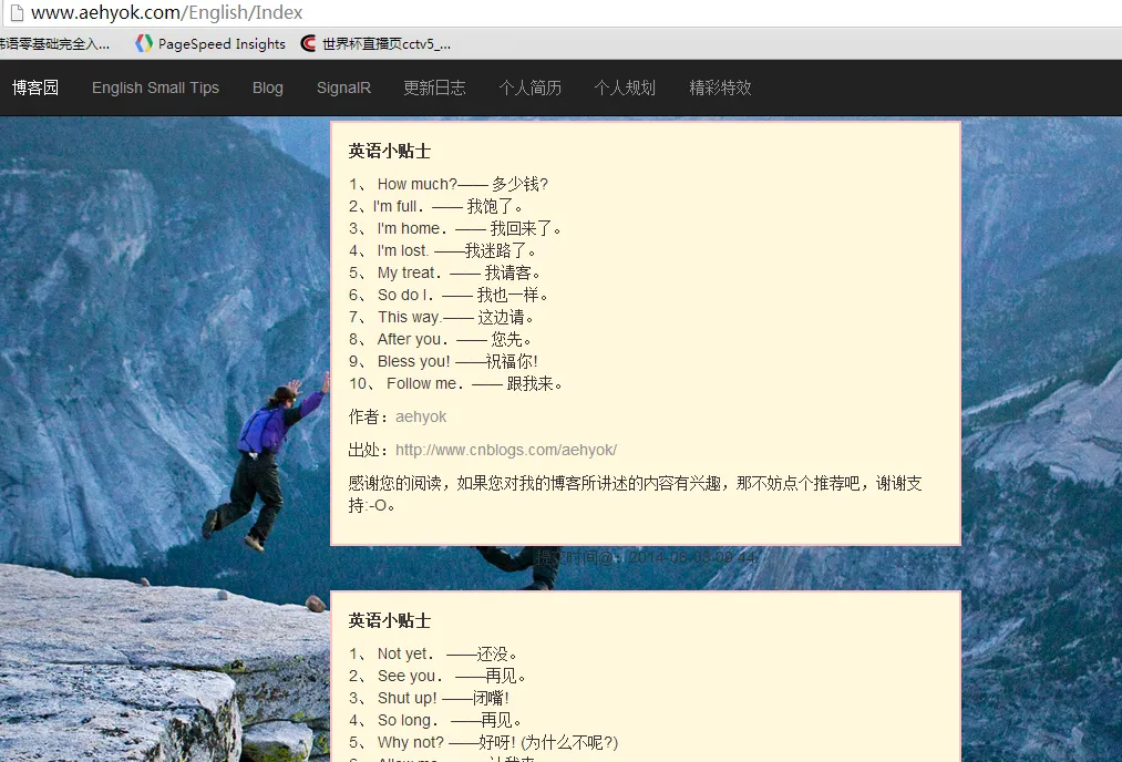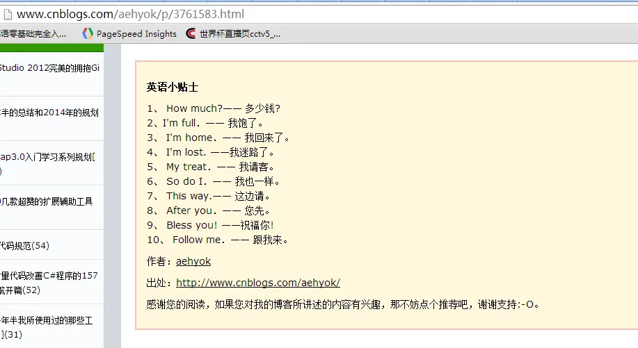 2、对接博客园自己的英语小贴士,我最近写的博文中的最下面都加入了一个小模块