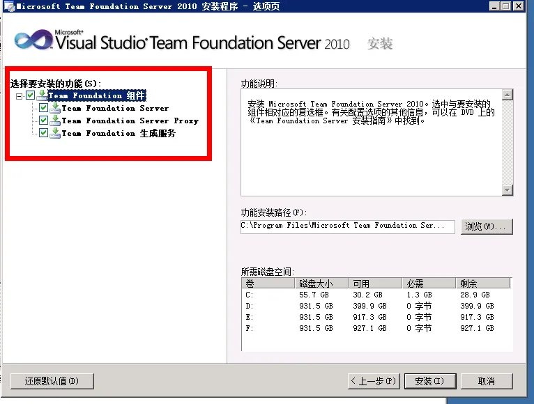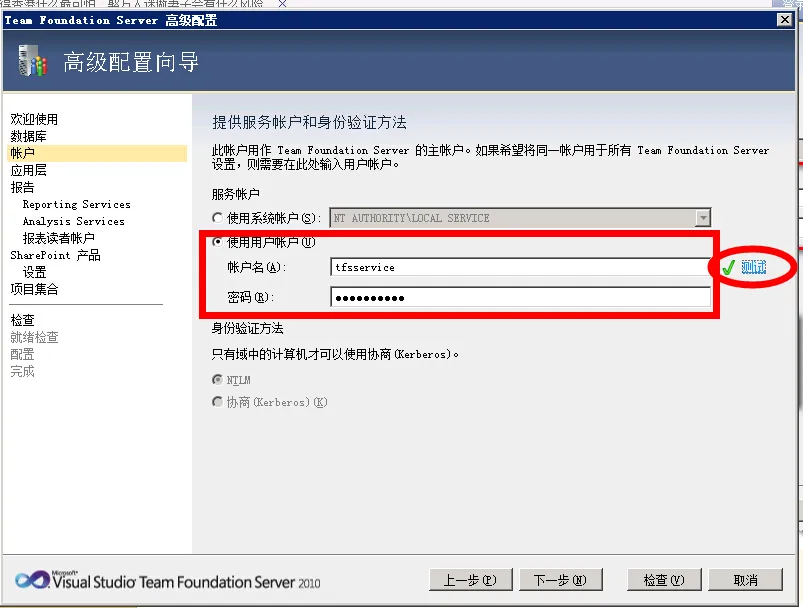 下一步,设置TFS的主账户,还是使用之前已经准备好的账户tfsservice
