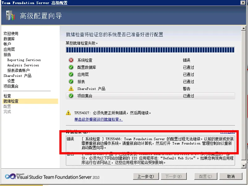 继续下一步,到如下图所示,现在我这里报错了,可能需要重启电脑,那我就重启一下试试看吧。