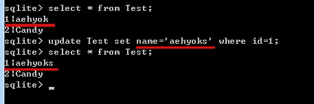 8、接下来试试修改数据吧 update Test set name='aehyoks' where id=1;