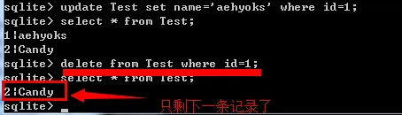 9、最后再来来删除勒 delete from Test where id=1;
