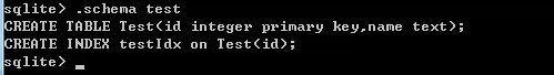 6、来创建一张数据库表 输入命令create table Test(id integer primary key,name text);