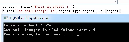 object = input('Enter an ojbect : ') print("Get anlu integer is",object,type(object),len(object))