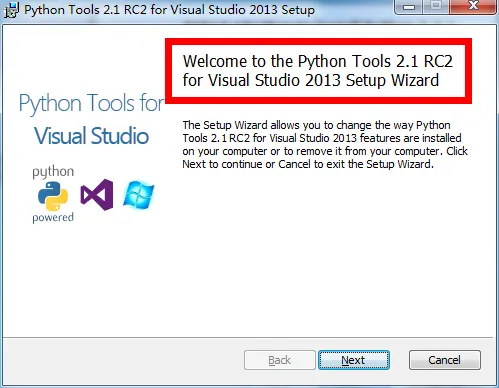 Win7 64位搭建开发环境。需要准备VS2013、Python、PTVS2013。