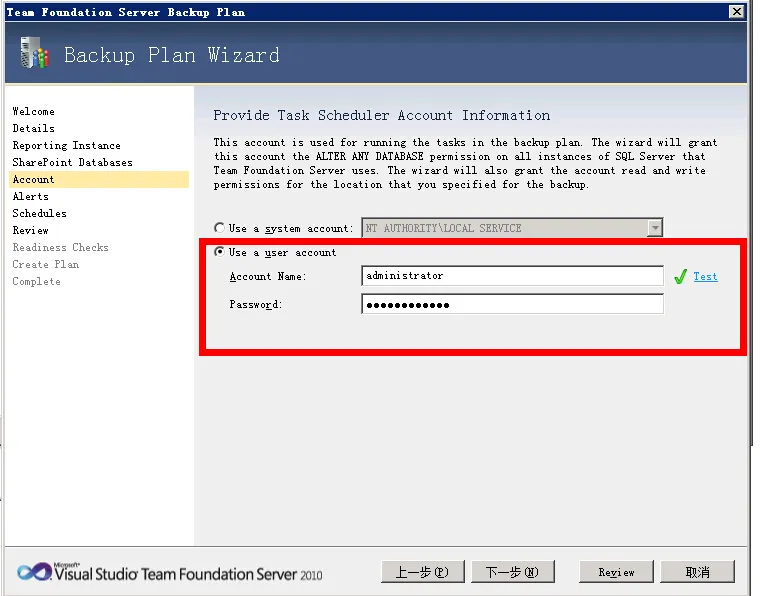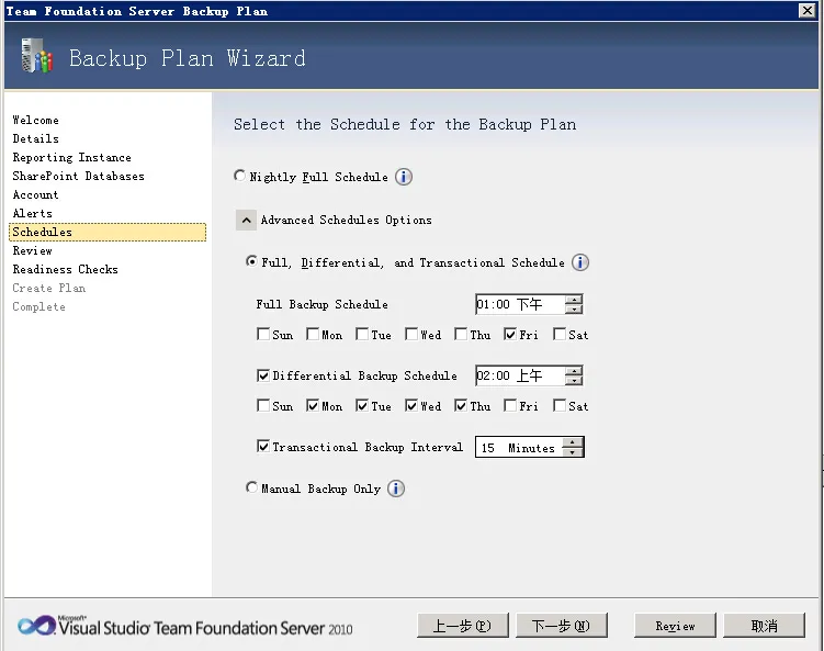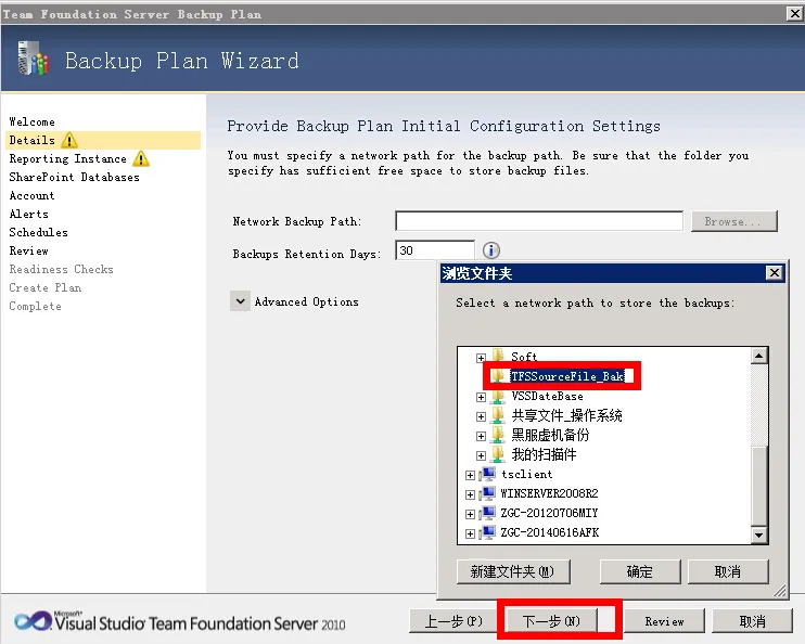 点击下一步,它会导航到第一个页面,在这个页面中你可以输入备份的路径和你希望保存备份的天数(超过这个天数以后,它会自动地删除备份)。