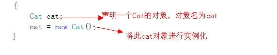 类的实例:实例化就是创建对象的过程,使用new关键字来创建。